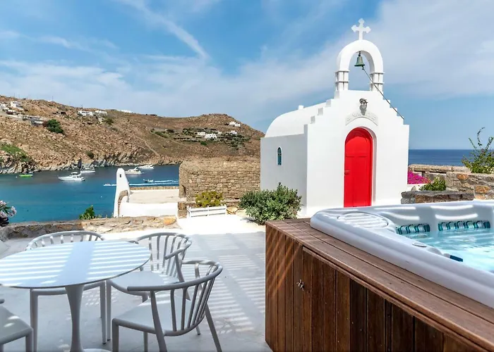 Hotellet Etesians Suites & Villas Super Paradise Beach har utsikt över uteplatsen och ligger inom 4 km från Ftelia strand i Super Paradise Beach. Detta 3-stjärniga hotell erbjuder gästerna en privat parkering på plats.